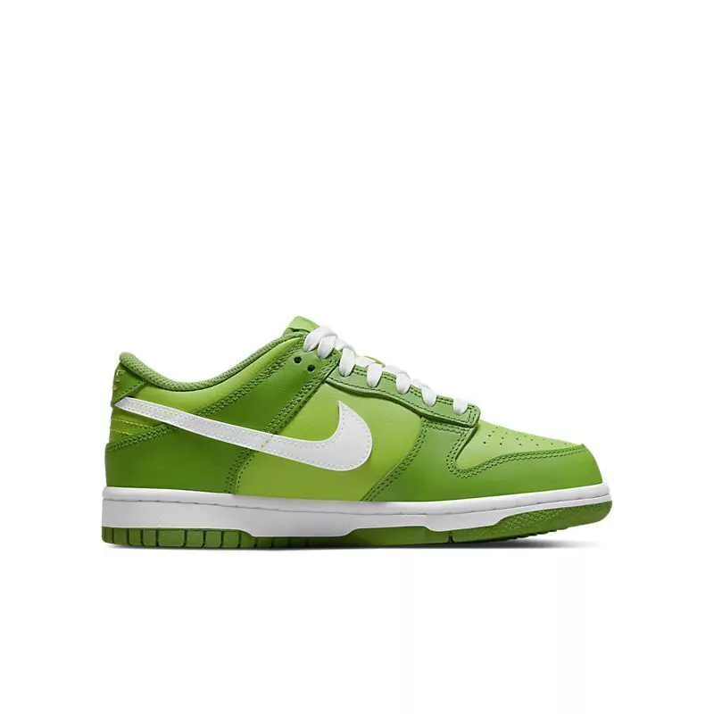 Couro real e sintético são duráveis e dão uma sensação de retrocesso como o Dunk original. O formato da gola e da língua, juntamente com as perfurações acima da área dos dedos, conferem um visual icônico fiel ao original.